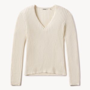 Fluted Rib V-Neck Long Sleeve