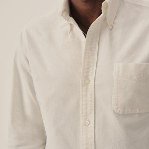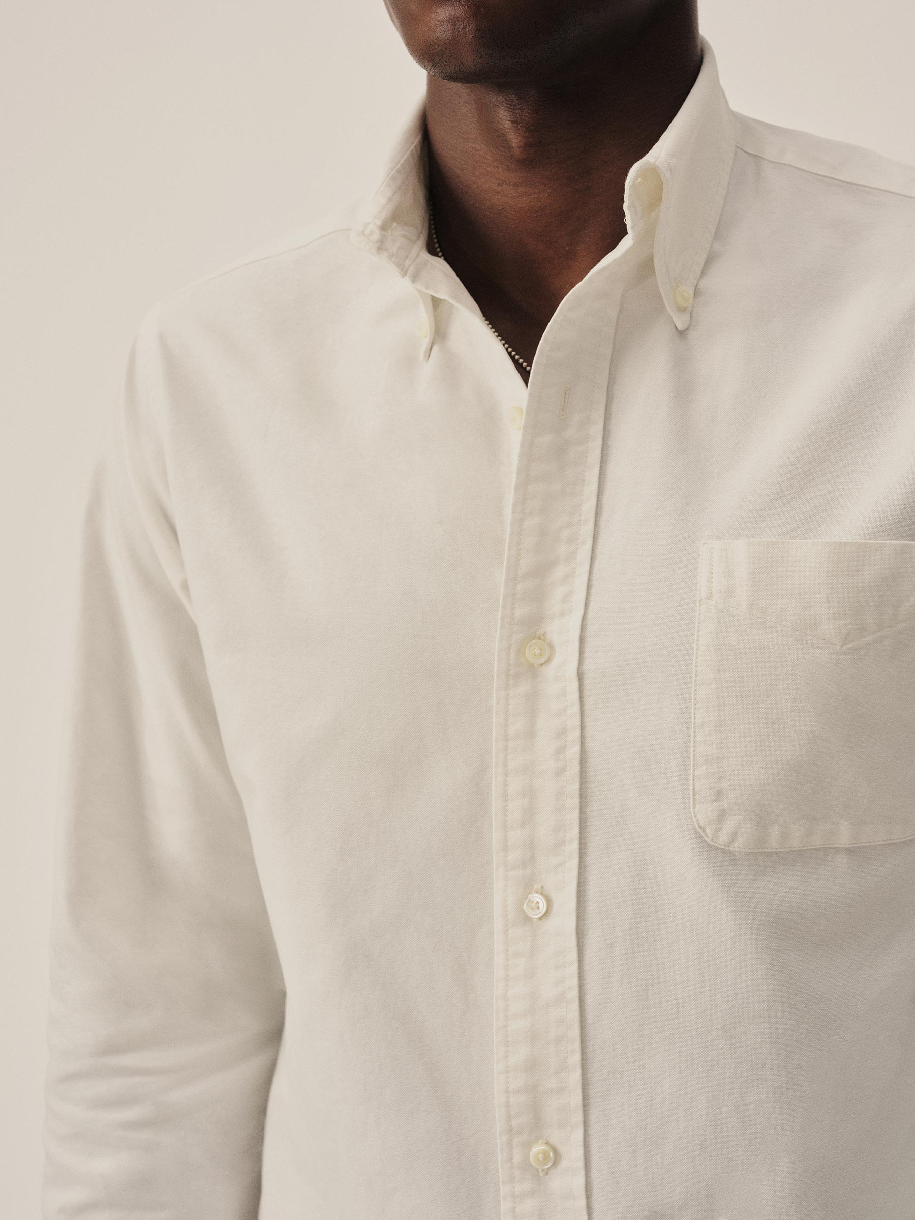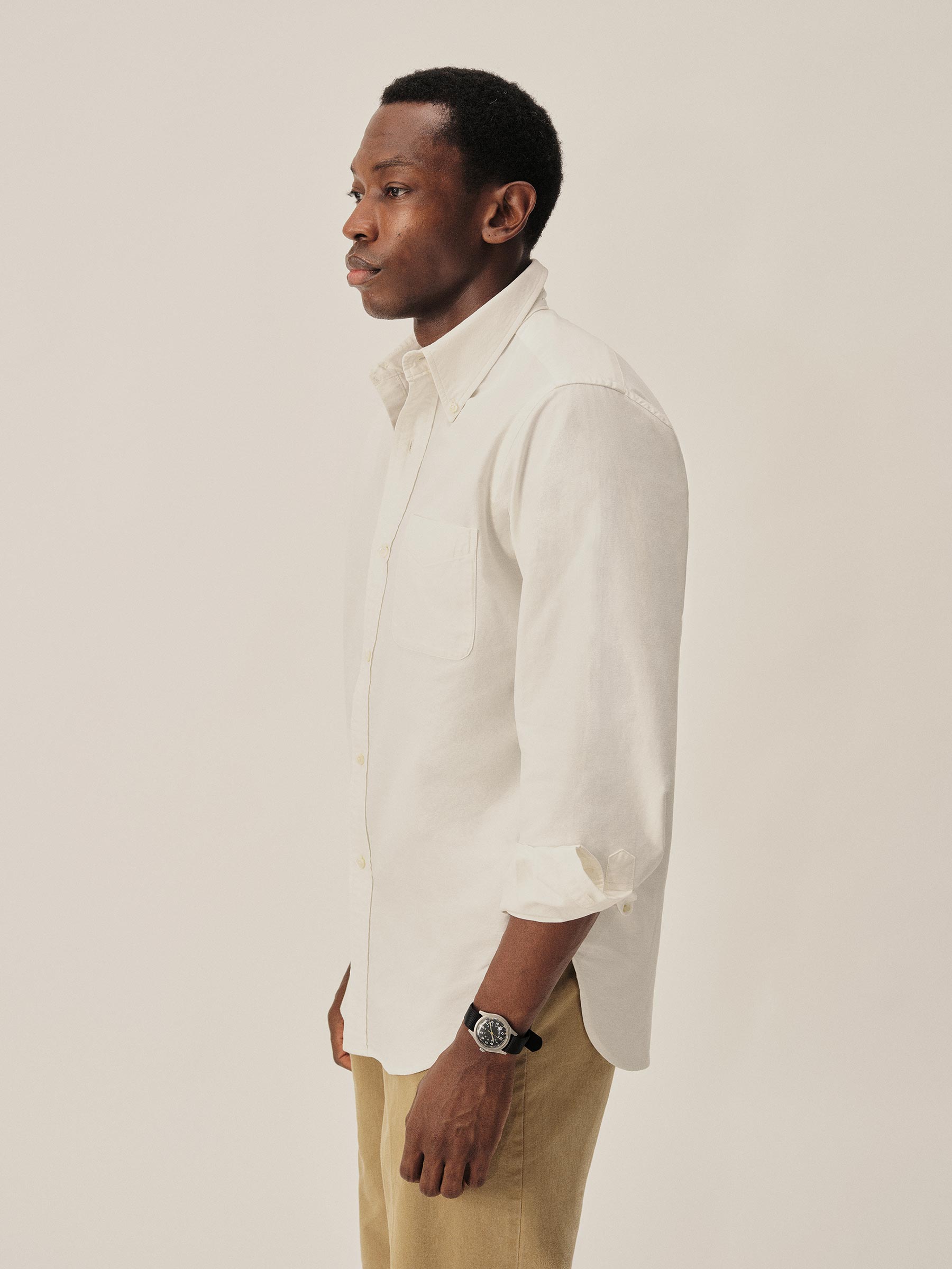 The Big Oxford is a subtle nod to vintage Ivy League tailoring with a gently oversized fit — referencing the proportions of archival American Oxfords. Built from 100% cotton in a 175 GSM heavyweight Oxford weave, using fine combed yarn in the warp and durable carded yarn in the weft. Finished with slightly thicker troca shell buttons.