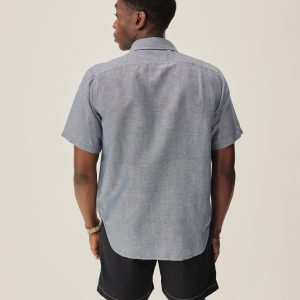 The quintessential short sleeve button-up in a classic fit inspired by a 1940s uniform shirt from our archives. Cut from a lightweight cotton linen blend with a breathable open weave. Details include a perfectly-proportioned point collar, a single chest pocket, and a curved hem.