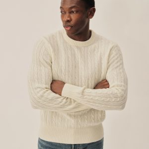 The California Cashmere Cable Crew is spun from 100% long-staple cashmere and knit in a refined 12-gauge cable pattern. Inspired by the casual poise of 1960s Ivy League sweaters, it’s finished with yarn-dyed ribbing at the neck, cuffs, and hem, and garment-rinsed for a soft, lived-in feel.