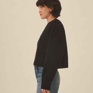 A cozy crewneck crafted from 100% cashmere in a soft jersey stitch. Designed with a boxy, oversized silhouette and saddle-shaped armholes, and finished with ribbed trims at the neckline, cuffs, and hem.