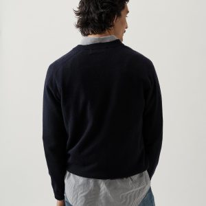 Classic fit long sleeve V-neck sweater in a 12 gauge jersey knit from yarn-dyed long staple cashmere. Fully-fashioned and finished with ribbing at the cuffs, collar, and hem. Constructed with hand-linked seams for durability.