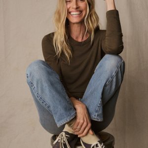 Slim fit long sleeve crewneck tee cut from a supersoft 130 GSM blend of bamboo, cotton, and wool. Features a straight hem, a self bound neck, and raised armholes that hug the contours of the shoulders. Garment washed for a lived-in feel.