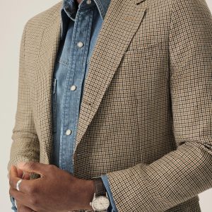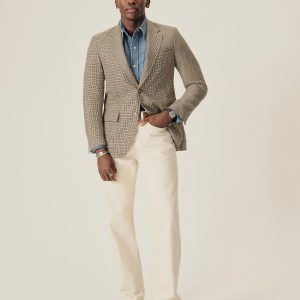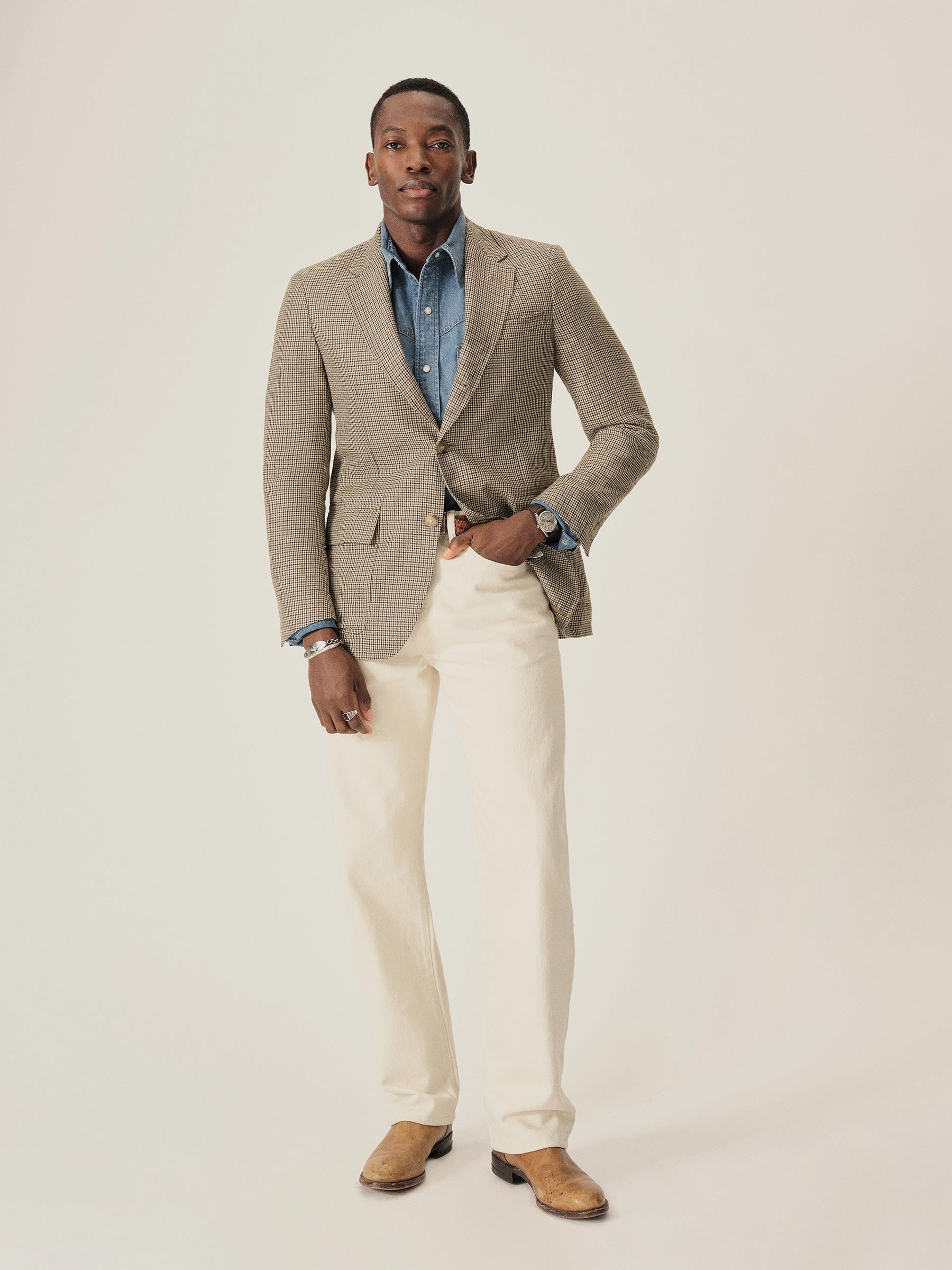 Classic Ivy blazer with a darted front, 3-roll-2 lapel, center back vent, and a soft shoulder. Half-lined in Bemberg with full canvas construction. Details include a patch chest pocket, two patch-and-flap waist pockets, three internal welt pockets, and a notch lapel.