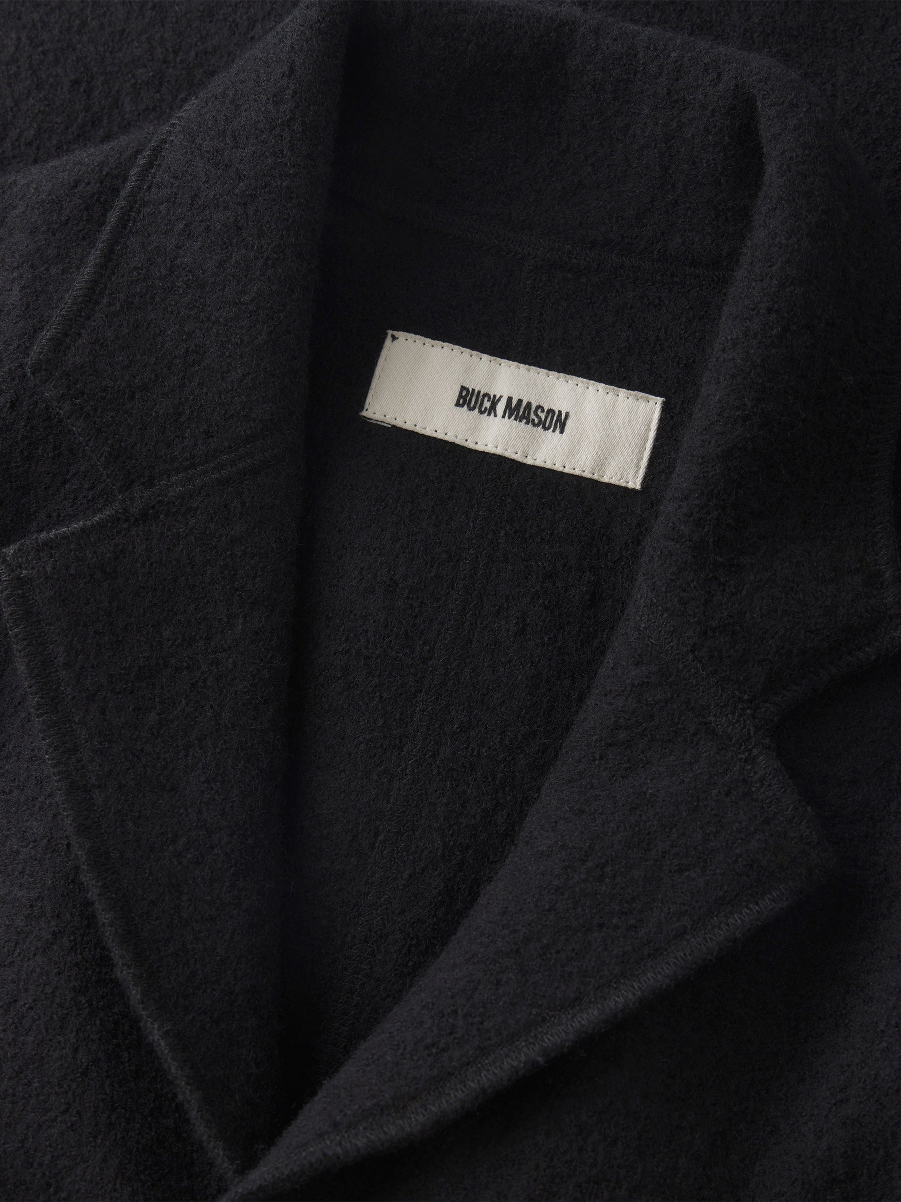 Classic fit chore coat with a slimmer cut through the arms and room in the torso for layering. This 340 GSM felted merino wool has been twice boiled for improved insulation and durability. Details include three patch pockets, horn buttons, and a notch collar. Constructed with hand-sewn facings and coverstitching throughout.