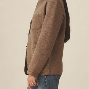 Classic fit chore coat with a slimmer cut through the arms and room in the torso for layering. This 340 GSM felted merino wool has been twice boiled for improved insulation and durability. Details include three patch pockets, horn buttons, and a notch collar. Constructed with hand-sewn facings and coverstitching throughout.