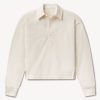 Inspired by the men’s Field-Spec Rugby, the women’s version is cut from 100% cotton in a dense slub jersey with a structured hand. Cut with a cropped, boxy fit and long sleeves, it’s designed with a woven twill collar and placket, tonal poly buttons at the center front, and herringbone-trimmed side slits.