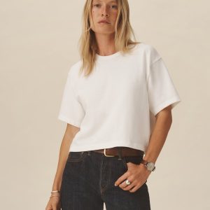 Cut from a heavyweight 310 GSM cotton, this slightly oversized, boxy crewneck tee has a straight hemline that hits right at your natural waist. Double-washed for a soft, smooth texture and consistent fit.