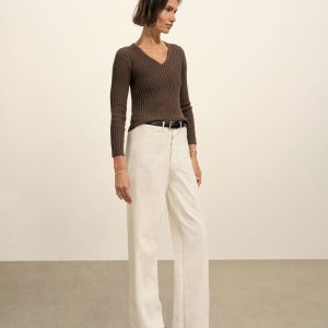 A vintage-inspired V-neck sweater with bracelet-length sleeves, crafted from premium Italian cotton yarn with a 3×3 ribbed structure for added stretch and a snug, flattering fit. Garment-washed for a truly authentic, worn-in feel.