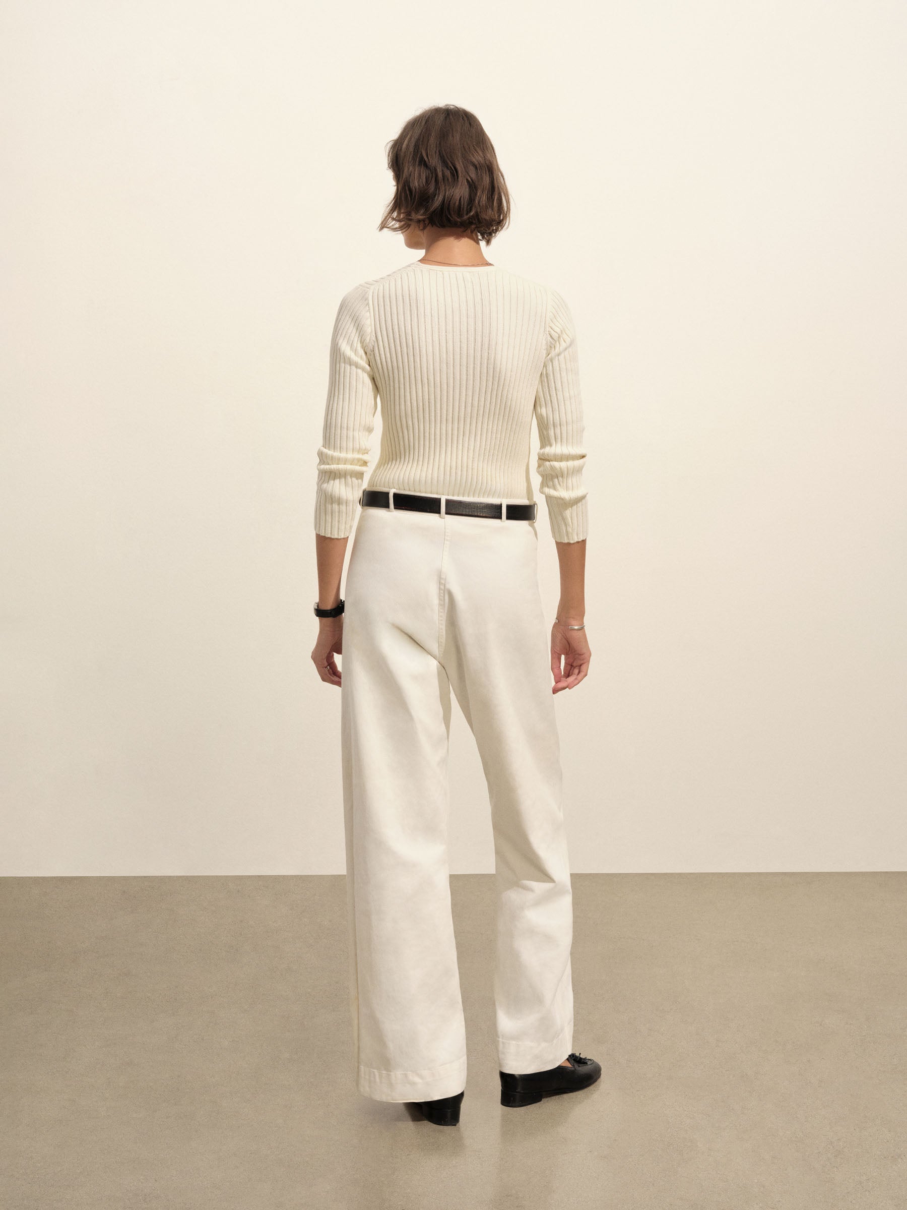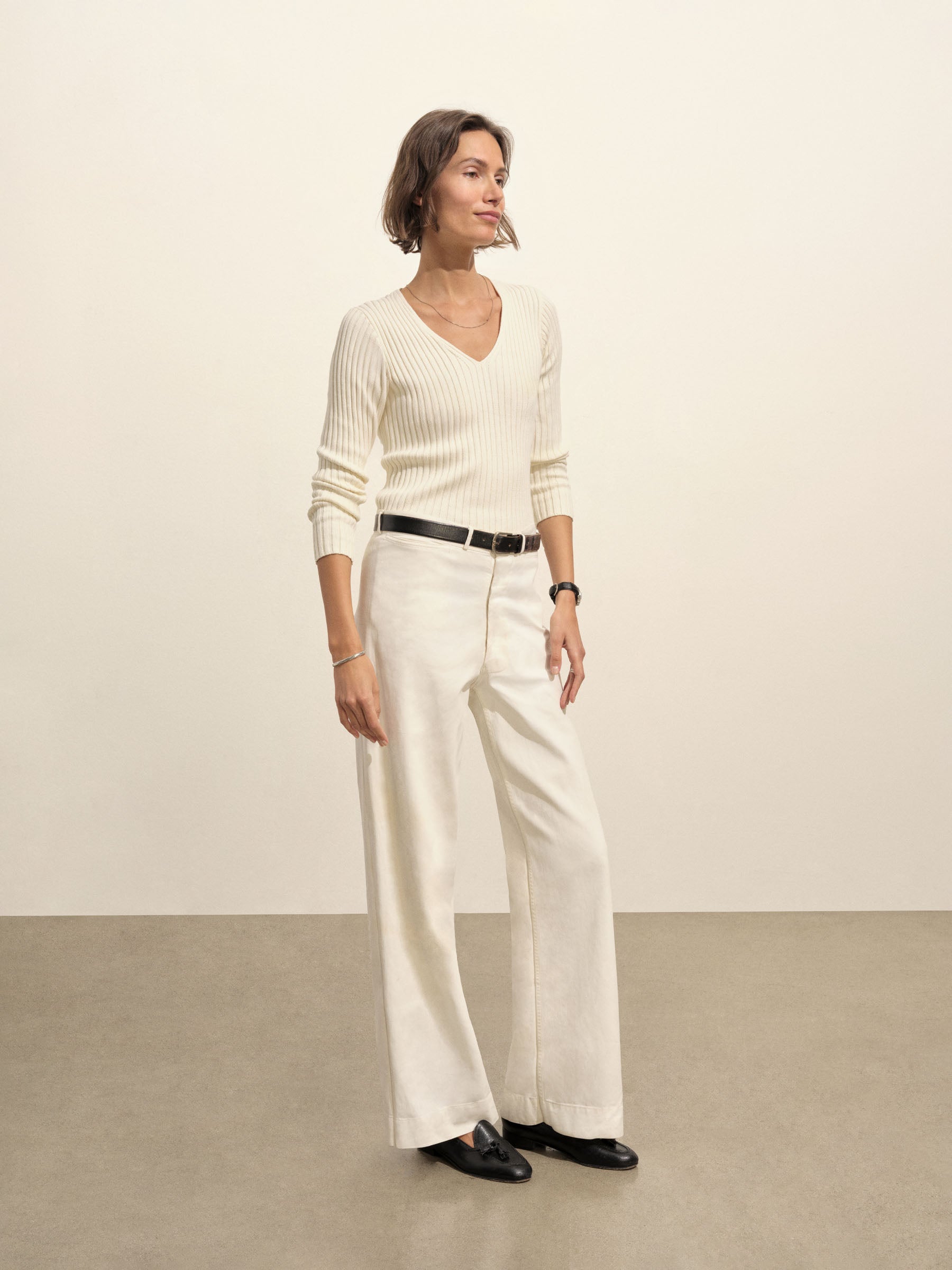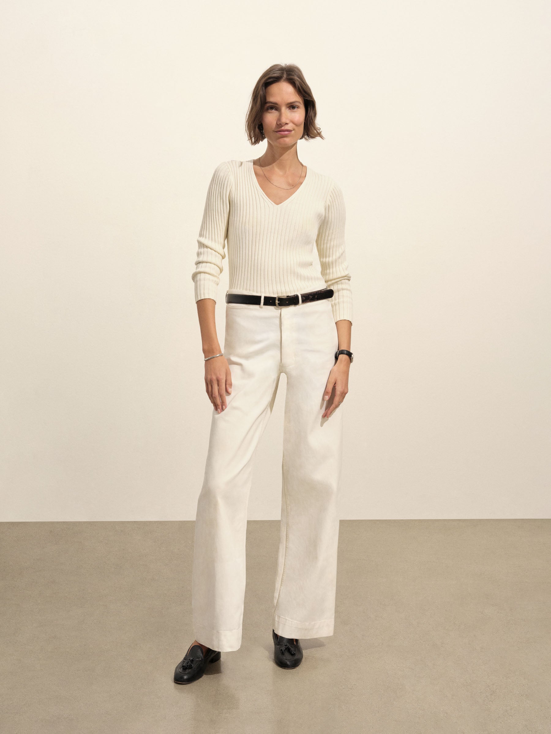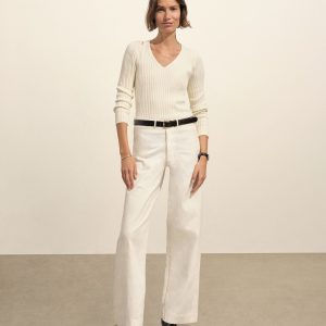 Fluted Rib V-Neck Long Sleeve