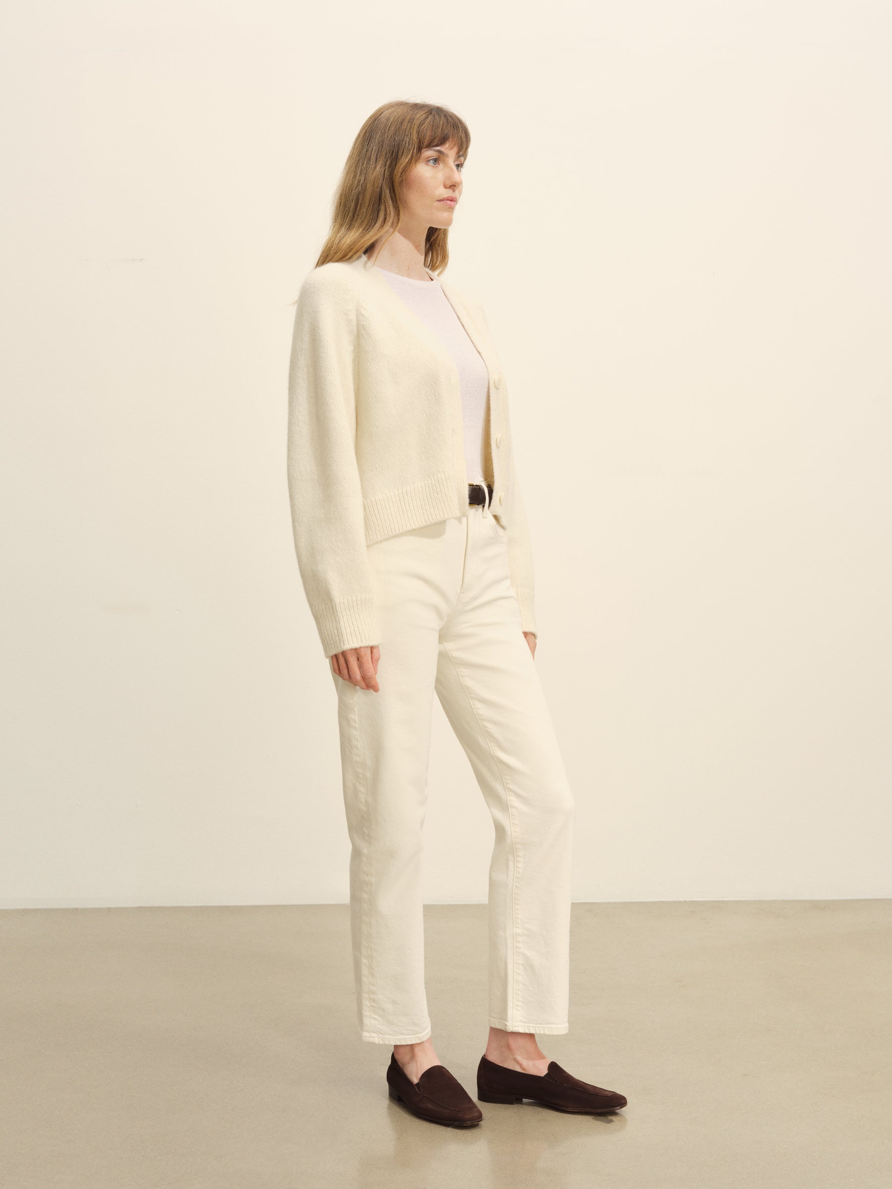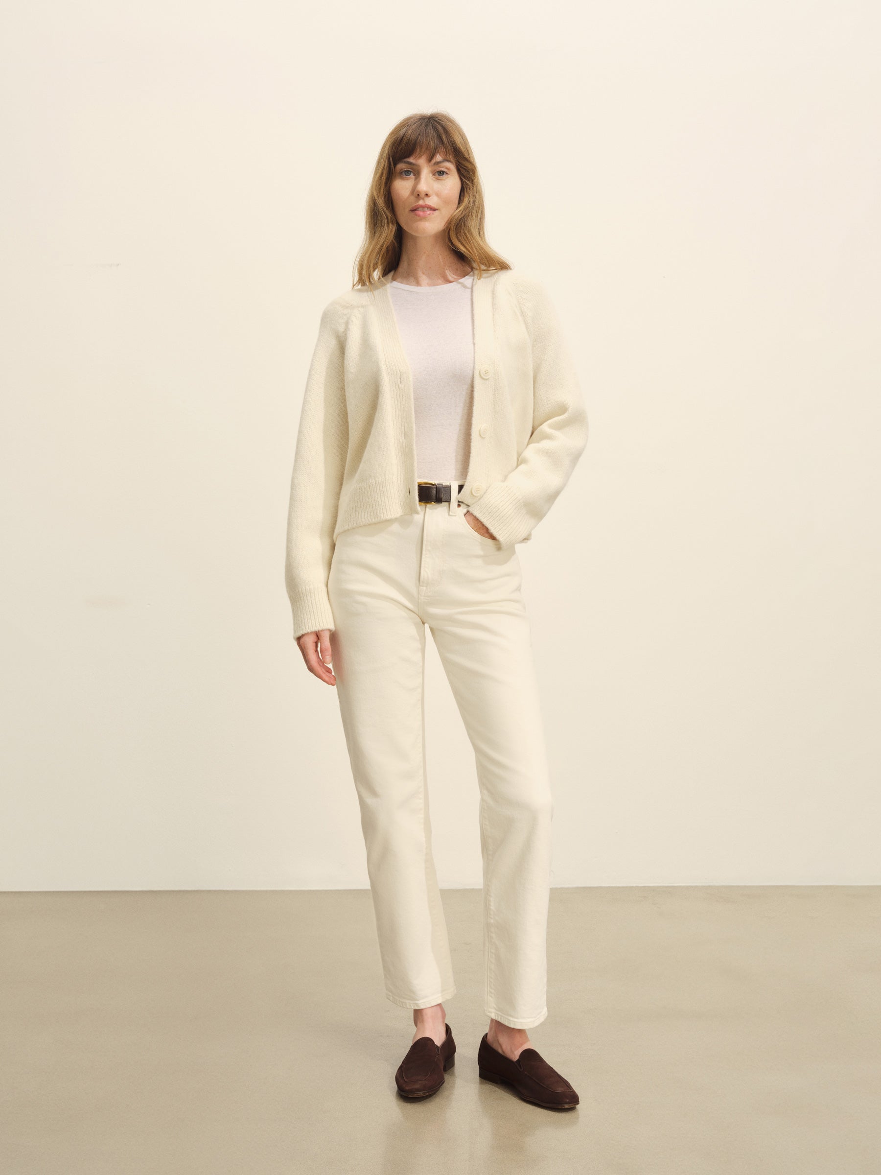 Crafted from a 5-gauge blend of Peruvian alpaca and merino wool, this cardigan has a soft finish and a substantial feel that’s prime for cool-weather outfitting. The boxy, cropped fit is complemented by a classic V-front, a three-button placket, and ribbing at the cuffs and hem.