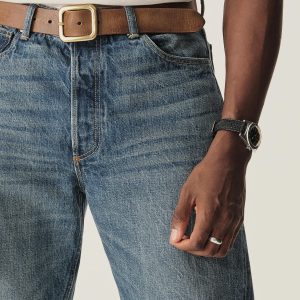 The Lee 101B is the quintessential rider jean. With a high rise and straight fit, they feature Lee’s acorn shaped back pockets, which are spaced further apart to accommodate comfort in the saddle. Modeled after the 101Bs of the 1940s, the back pockets omit the “Lazy S” stitching, but are constructed with classic Lee X bartacks, introduced in 1938. Of course, no pair of Lee’s are complete without the leather branded Lee patch on the waistband.