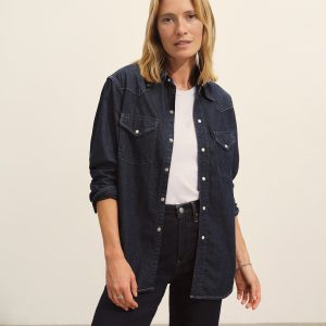 Inspired by vintage western shirting, our take has utility-style details like an angled front yoke, a back yoke, flap pockets, cuffs, and contrast stitching. Made from light and drapey 8 oz denim with an irregular raised nep texture, it’s finished with Japanese pearl snaps and garment washed for a lived-in feel.