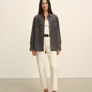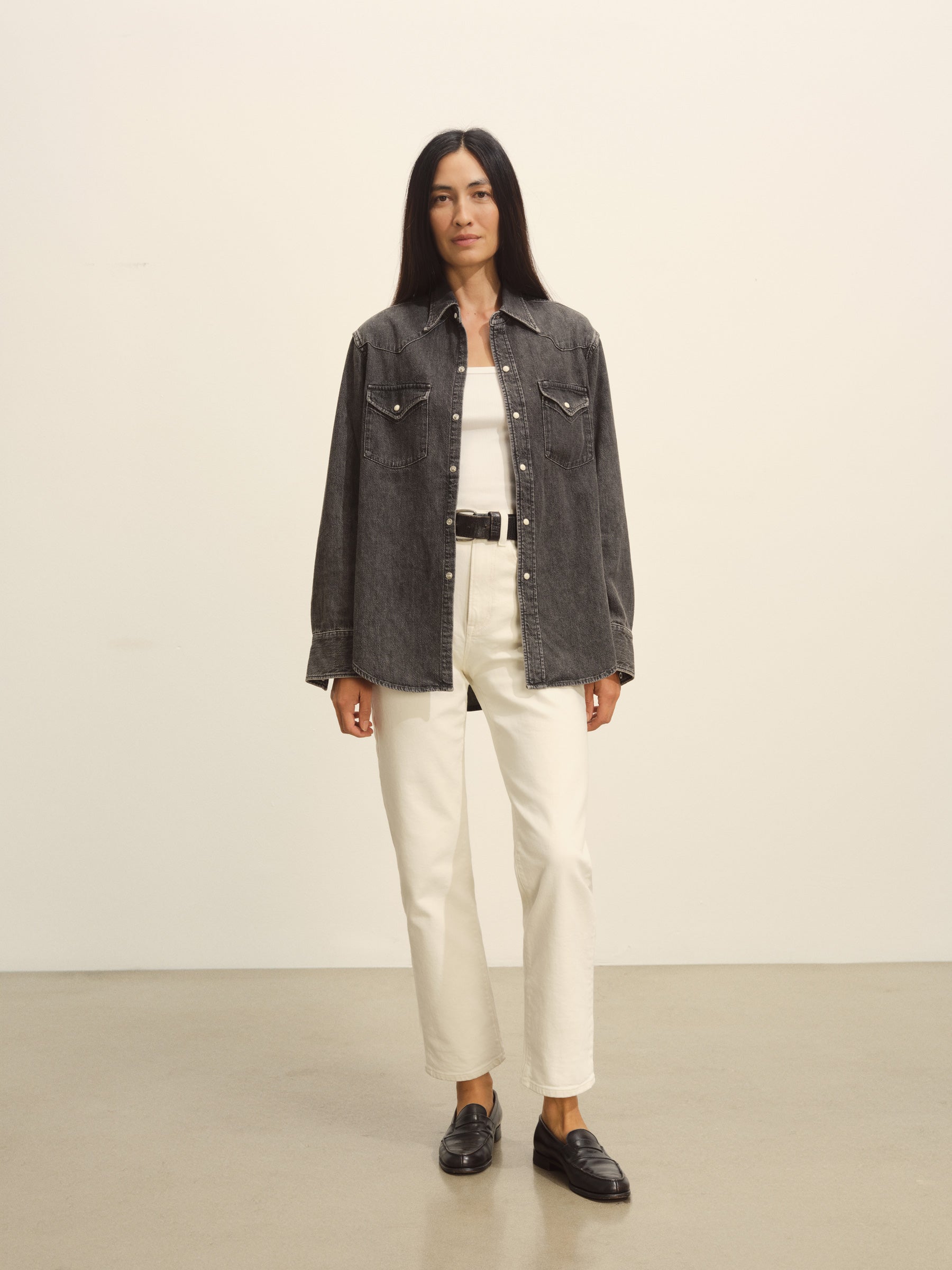 Inspired by vintage western shirting, our take has utility-style details like an angled front yoke, a back yoke, flap pockets, cuffs, and contrast stitching. Made from light and drapey 8 oz denim with an irregular raised nep texture, it’s finished with Japanese pearl snaps and garment washed for a lived-in feel.