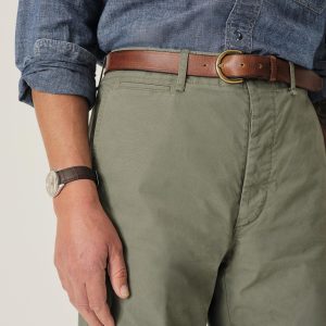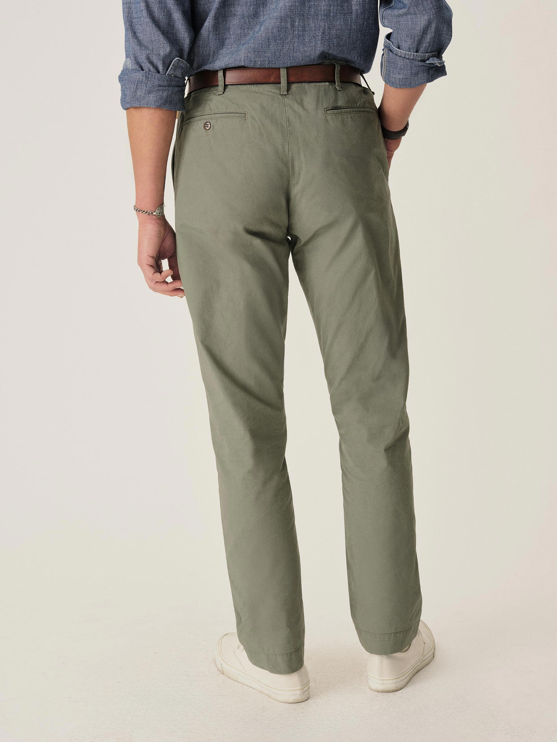 The classic officer’s pant in our Maverick Slim fit: mid-rise, slim through the thighs with a taper below the knee. Cut from 5.5 oz. cotton poplin with a crisp hand and light structure that’s suitable for warmer climates. Features a “Hollywood” one-piece waistband, slash front pockets, welted back pockets, and a welted coin pocket. Lined with a natural canvas interior and finished with corozo buttons. Garment-washed for a lived-in feel. Button fly.