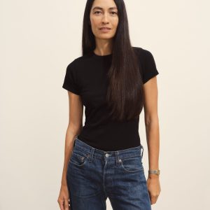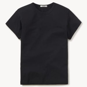Slim fit short sleeve crewneck tee with a straight hem in 120 GSM jersey, knit from long-staple Supima cotton. Constructed with a durable rib stitch collar and double-needle cover stitch hem. Garment washed with softener for a lived-in feel.