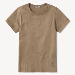 Slim fit short sleeve crewneck tee with a straight hem in 120 GSM jersey, knit from long-staple Supima cotton. Constructed with a durable rib stitch collar and double-needle cover stitch hem. Garment washed with softener for a lived-in feel.