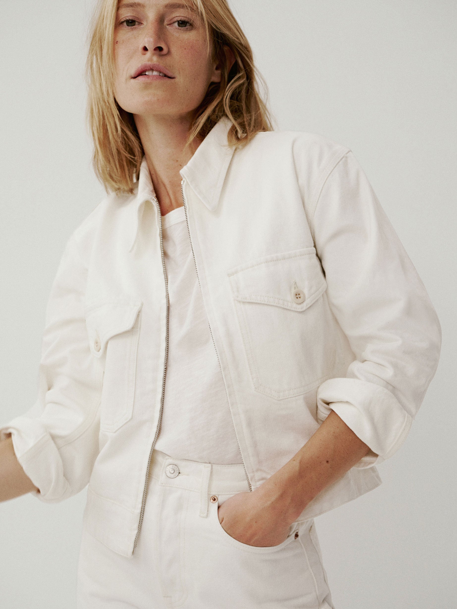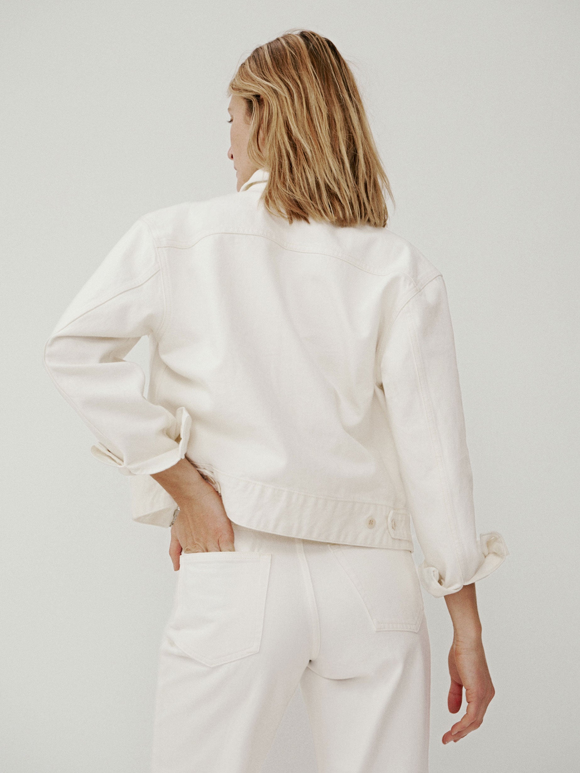 Relaxed utility jacket inspired by vintage mechanic uniforms. Cut from subtly structured 11.4 oz. cotton twill with all of the character of classic denim and a touch of stretch for comfort. Details include a zipper front, chest pockets, and button-through cuffs. Back tabs can be adjusted for a more fitted waist and extra blouson. Garment dyed and washed for a lived-in feel. Pair with the Rider Pant to complete the look.
