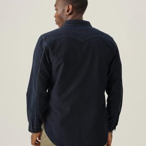 We reimagined a miner’s shirt from the 1930s in lightweight cotton sateen. After washing it for a well-worn feel, we put it through a specialized dye process to throw an accent on the seams while preserving the deep indigo hue. A trim fit and Western yoke complete this vintage-inspired piece.