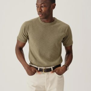 The Sidewinder is inspired by a tee first made a century ago to be worn beneath US military uniforms. When the heat was on, soldiers unbuttoned their top layers, and the tee took on the status we know today: as a garment worn proudly alone. Like the original, ours is crafted from substantial ribbed cotton that wears hard but breathes easy. We cut it for a classic fit that’s not too tight, not too loose.