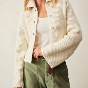 Relaxed, rib-stitched collared cardigan made from a lofty 5 guage cotton. Garment washed for a lived in, vintage feel and completed with corozo buttons and an easy, slightly laid back silhouette.