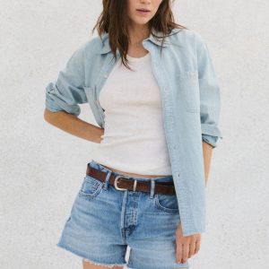 Summer-ready mid-rise cutoffs with a 3.5” inseam, crafted from lightweight indigo-dyed Japanese denim. Featuring metal rivet reinforcements at the pockets and a button fly. Garment-washed for a vintage look and feel.