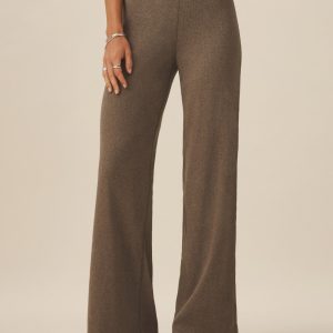 Straight leg, high-waisted 2×2 rib knit pant cut from 295 GSM stretch cotton that holds it shape. Fits comfortably at the waist with a wide elastic waistband with a full length inseam measuring 31 3/4”. Garment washed for a lived-in feel.