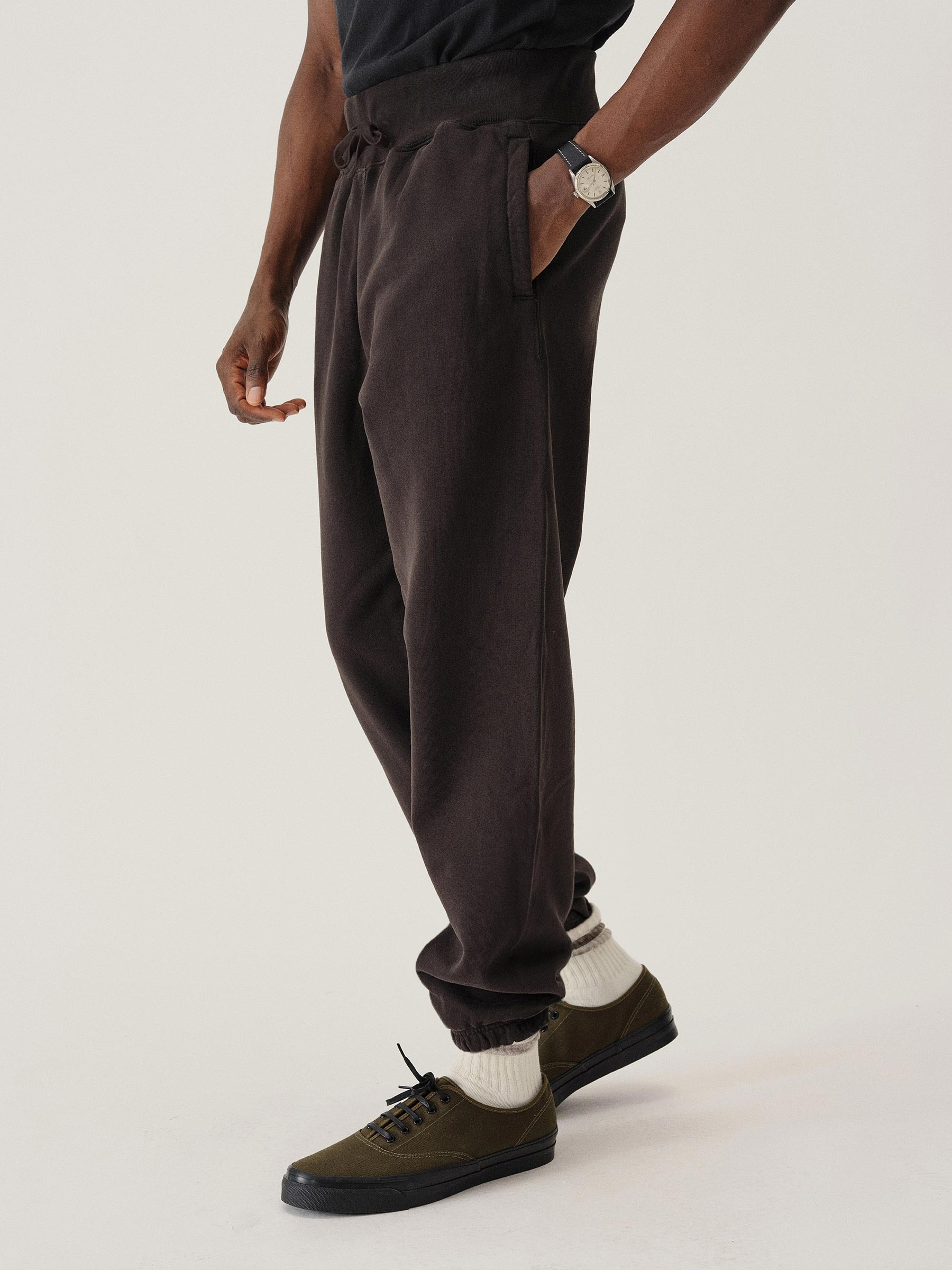 A 1940s-inspired sweatpant made from plush, not-too-heavy, not-too-light, welterweight French terry. Features a wide rib waistband and drawcord waist closure.