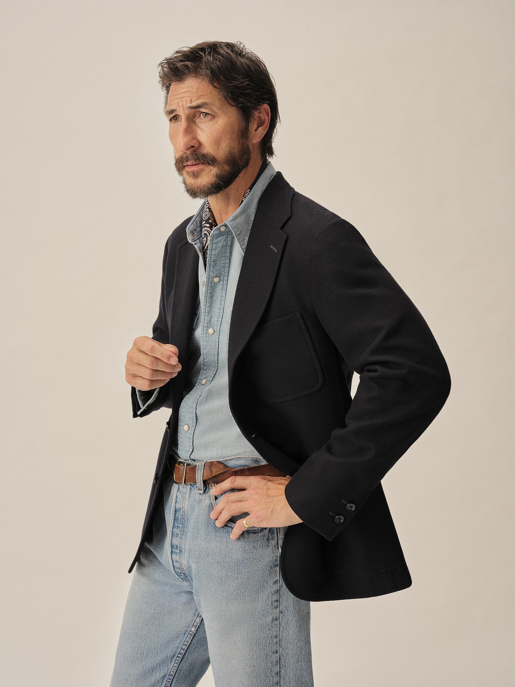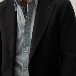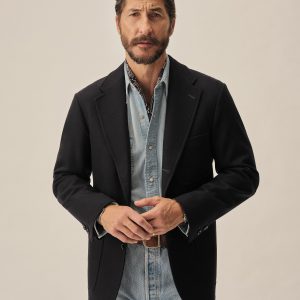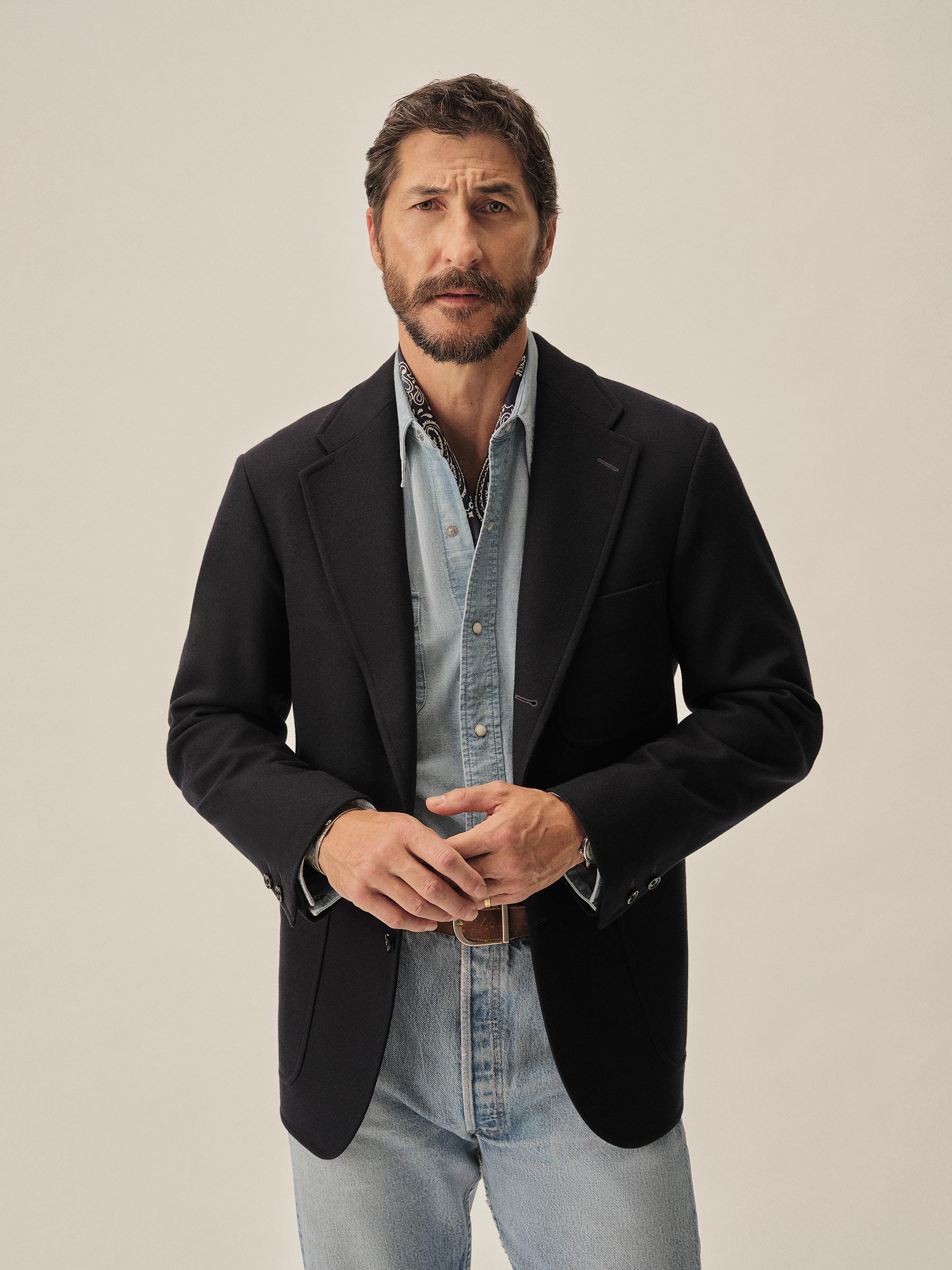 An Ivy-inspired American blazer crafted from a blend of wool and cashmere. Designed with a 3-roll-2 button stance, open patch pockets, and a functional sleeve vent with two horn buttons. Cut with a center back seam and left unlined through the body for a relaxed, unstructured feel, while the sleeves are fully lined in viscose for smooth layering.